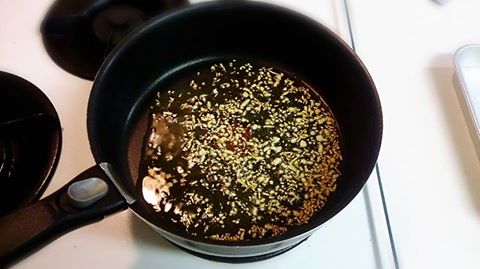中火です。焦がさないように、にんにくから、香りが出てきて、色がついてきたら、