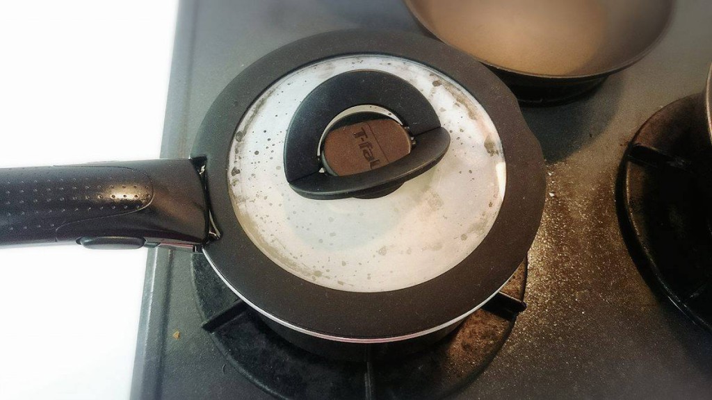 では、蓋のある鍋に水をたっぷり入れて、沸騰させてください。
