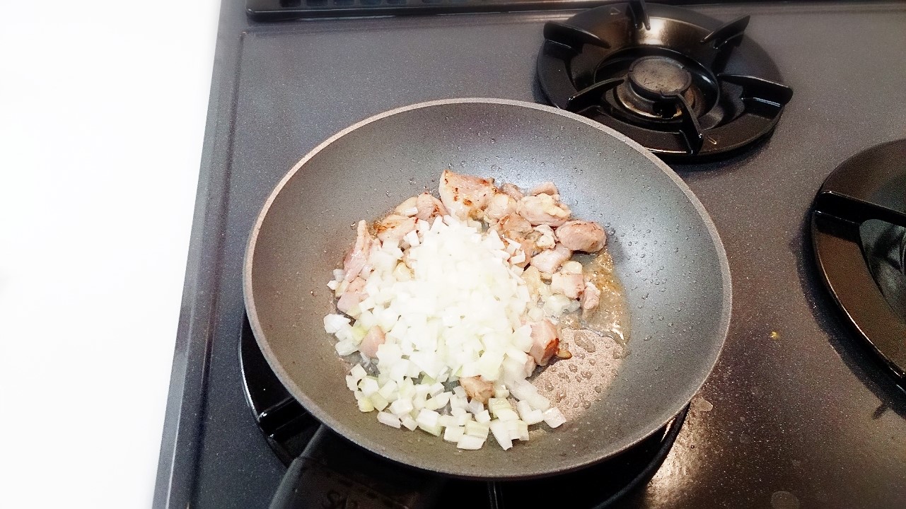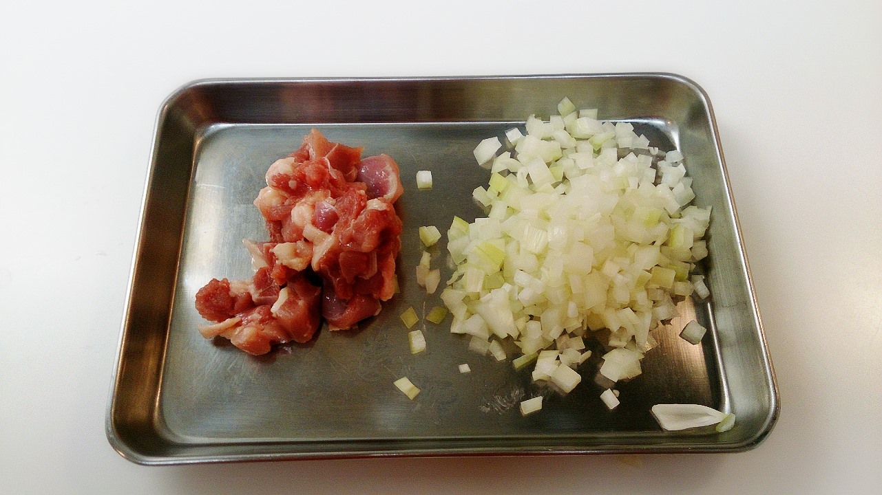 玉ねぎは細かい方が、火が通りやすいかな。