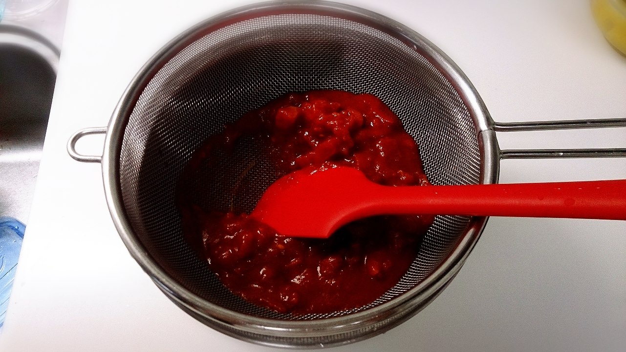 さて、濾して種を除いた、ホールトマトを、フードプロセッサーに入れて、